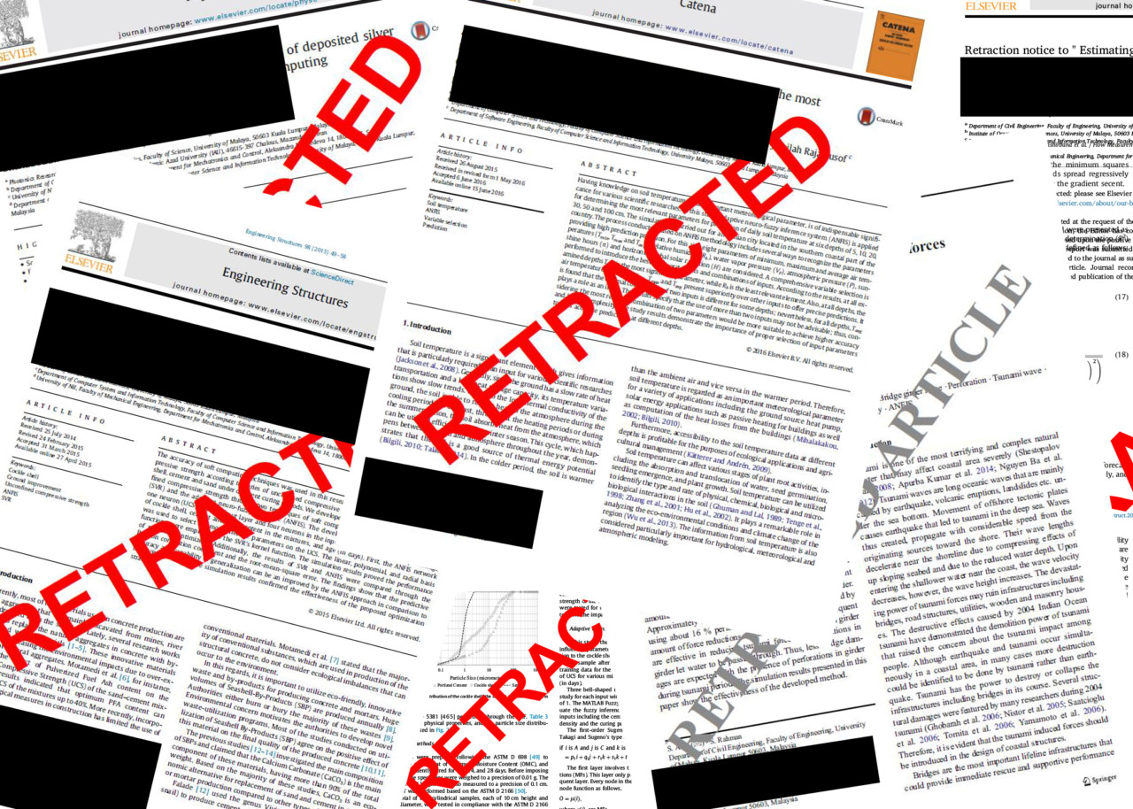 I en av de tidligste notisene om tilbaketrekning, i tidsskriftet Measurement, står dette: «Denne artikkelen ble godtatt på anbefaling av minst én forfalsket vurdering. Anbefalingen ble sendt fra en fiktiv e-postkonto som den korresponderende forfatteren hadde oppgitt til tidsskriftet.»