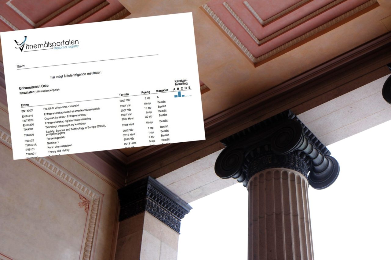 Det er det nasjonale organet Ceres, som er tilknyttet UiO, som leverer Vitnemålsportalen.