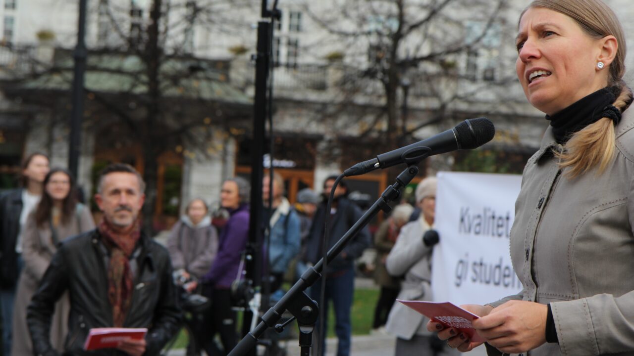 Ann Mari Milo Lorentzen, nestleder i Utdanningsforbundet sa at hele universitets- og høgskolesektoren er under press. Hun la særlig vekt på konsekvensen for lærerutdanningene.
